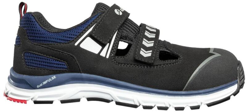 Üvegszálas orremerevítőve ellátott munkavédelmi szandál. Magas minőségű, lélegző, mikroszálas felsőrész, kopásálló textil elemekkel. További extrák: ESD, fémmentes, extrém könnyű súly, lélegző belső bélés, gyorsfűzős rendszer, anatómiailag kialakított comfit®AIR talpbetét, tépőzáras záródás, TPU orrborítás. DUAL. IMPULSE talpszerkezet, 300°C-ig hőálló, csúszásbiztos gumi talp. IMPULSE. FOAM® talpközép.