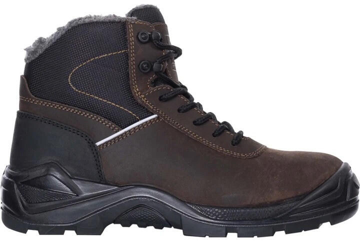 Felső rész: Nubuck - marhabőr, víztaszító Bélés szintetikus szörme Talp rész: PU/PU Talpb etét: alap - szintetikus szörme Kapli: üv egszál 459 Talplemez: kev lár Szabványok: EN ISO 20345:2011