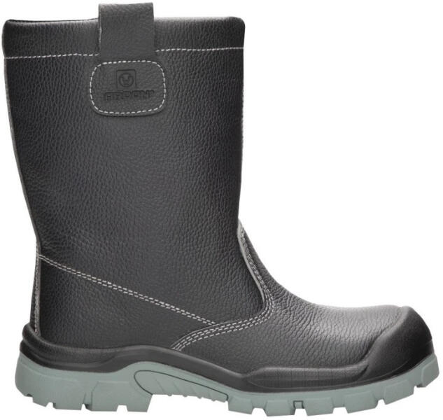 Felső rész: marhabőr, hasított bőr mintával, víztaszító Bélés szintetikus szörme Talp rész: PU/gumi, olajálló, antistatikus, csúszásmentes, 300°C-ig hőálló Talpbetét: Anatomic Foam - anatómiailag formázott EVA hab Kapli: kompozi t 431 Talplemez: kev lár Szabványok: EN ISO 20345:2022