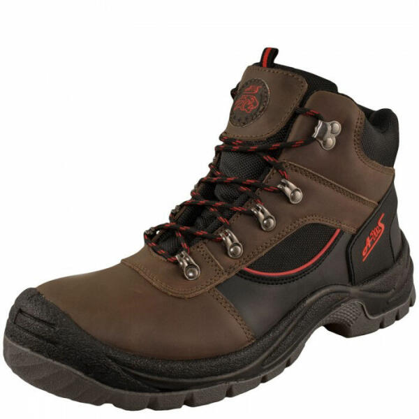 TULAJDONSÁGOK 2-2,2 mm vastag erős Crazy Horse bőr felsőrésszel rendelkezik a munkabakancs, valamint gumi orr és sarok erősítéssel. Magas felsőrész  Antisztatikus tulajdonságok PU/PU talp Rezgéselnyelő sarokrész Csúszásmentes és olajálló talp (SRC) Acél kaplival ellátott munkavédelmi bakancs Szabvány MSZ EN ISO 20345:2011 S1