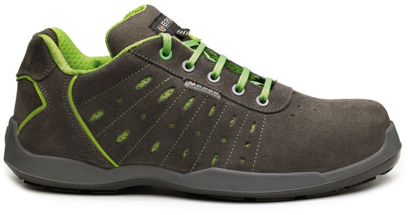 Szállítási idő: 3-5 nap Base S1P munkavédelmi cipő velúrbőr felsőrésszel. Kompozit orrvédelemmel és kompozit talpátszúrás elleni ellátott, ütéscsillapítás a saroknál. Antisztatikus és szénhidrogéneknek ellenálló egyedi kialakítású talp, a férfi és női lábnak megfelelő külön kapli szélességgel is választható. Javasolt felhasználási területek: könnyűipar, mezőgazdaság, kereskedelem, szolgáltatóipar, logisztika. Felhasznált anyagok és technológiák: Felsőrész: Velúrbőr. Bélés: SmellStop szagsemlegesítő és antibakteriális technológiával. Középtalp: Fresh'n Flex technológiával. Kapli: SlimCap technológiával. Talp: Fáradtsággátló AirTech+TPU Skin technológiával.