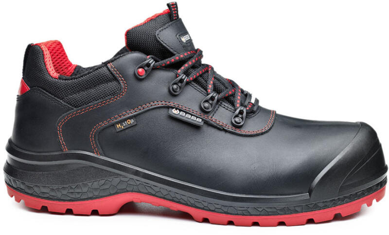 Base S3 munkavédelmi cipő magasabb vízálló tulajdonsággal színbőr felsőrésszel és H2st0p membránnal. Kompozit orrvédelemmel és kompozit talpátszúrás elleni védelemmel ellátott, ütéscsillapítás a saroknál. A minél nagyobb tartósság érdekében orrborítással rendelkezik. Antisztatikus és szénhidrogéneknek ellenálló egyedi kialakítású talp. Javasolt felhasználási területek: nehézipar, fémipar, könnyűipar, mezőgazdaság, építőipar. Felhasznált anyagok és technológiák: Felsőrész: Vízálló színbőr H2st0p membránnal. Bélés: SmellStop szagsemlegesítő és antibakteriális technológiával. Kapli: SlimCap technológiával. Talp: AirTech dupla sűrűségű PU/HRO gumi és Life Plus technológiával.