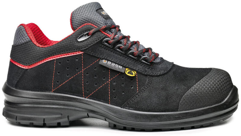 Base S1P munkavédelmi cipő hasított bőr felsőrésszel, ESD tulajdonsággal. Kompozit orrvédelemmel és kompozit talpátszúrás elleni védelemmel ellátott, ütéscsillapítás a saroknál. A minél nagyobb tartósság érdekében orrborítással rendelkezik. Antisztatikus és szénhidrogéneknek ellenálló egyedi kialakítású talp, a férfi és női lábnak megfelelő külön kapli szélességgel is választható. Javasolt felhasználási területek: könnyűipar, elektronika, mezőgazdaság, logisztika. Felhasznált anyagok és technológiák: Felsőrész: hasított bőr. Bélés: SmellStop szagsemlegesítő és antibakteriális technológiával. Középtalp: Fres'n Flex technológiával. Kapli: SlimCap technológiával. Talp: Fáradtsággátló AirTech egysűrűségű technológiával.