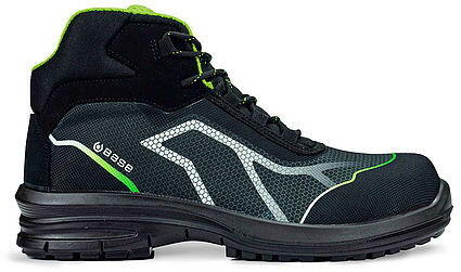 Base S3 munkavédelmi bakancs magasabb vízálló képességű technikai textil felsőrésszel. Kompozit orrvédelemmel és kompozit talpátszúrás elleni védelemmel ellátott, ütéscsillapítás a saroknál. Antisztatikus és szénhidrogéneknek ellenálló egyedi kialakítású talp, a férfi és női lábnak megfelelő külön kapli szélességgel is választható. Javasolt felhasználási területek: könnyűipar, kereskedelem, szolgáltatóipar, logisztika, de akár az építőipar is. Felhasznált anyagok és technológiák: Felsőrész: vízálló technikai textil. Bélés: SmellStop szagsemlegesítő és antibakteriális technológiával. Kapli: SlimCap technológiával. Középtalp: Fresh'n Flex talpátszúrás elleni védelemmel. Talp: Fáradtsággátló AirTech egysűrűségű technológiával. CikkszámB0979EU szabványUNI EN ISO 20345:2012 S3 (SRC)AnyagVízálló technikai textil