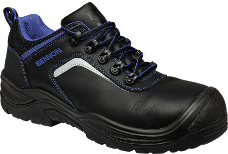 Biztonsági, rendkívül tartós, bőrből készült félcipő S3 minősítéssel. A cipő orr-része kopás elleni védelemmel rendelkezik, ezért a cipő felsőrésze jobban védett a mechanikai sérülésekkel szemben, így a cipő hosszabb ideig használható. Ami a biztonsági elemeket illeti, a cipő kompozit orrmerevítővel rendelkezik, amely megvédi a lábujjakat a mechanikai sérülésektől, valamint könnyű kevlár talplemezzel, amely megakadályozza a talp esetleges átszúrását, ha például rálép egy szögre. További hasonlóan fontos biztonsági részlet az SRC szerinti csúszásmentes tulajdonságokkal rendelkező talp, amely jobb stabilitást biztosít járás közben, valamint az oldalsó fényvisszaverő elemek, amelyek biztosítják jobb láthatóságot sötétben és szürkületben a közúti forgalomban, ezért nagyobb biztonságot nyújtMivel nem csak a biztonság, hanem a kényelem is nagyon fontos, a cipő sarokrésze rezgéscsillapítással rendelkezik, ami tompítja a lábat érő ütéseket, és így kíméli a lábizmokat. Teljesen fémmentes. A cipő a nagy terheléssel járó munkahelyi környezetben biztonságot és kényelmet biztosít a lábaknak. ANYAG LEÍRÁSA