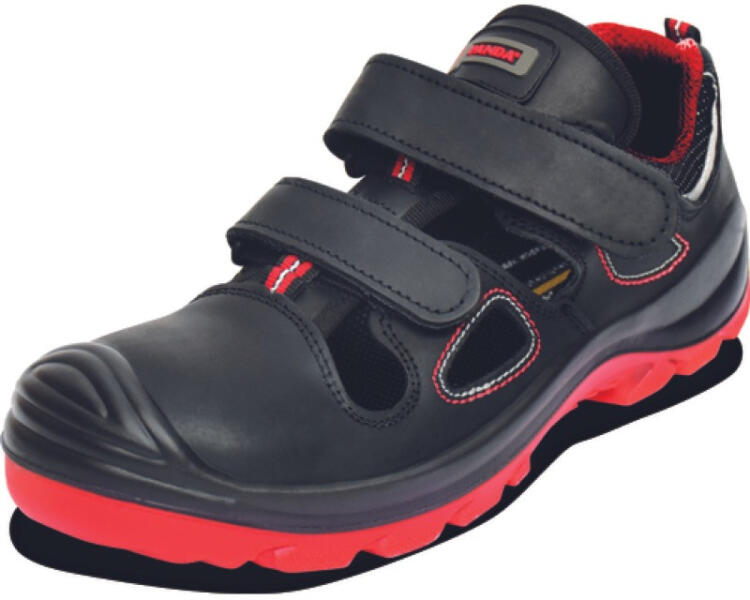 Biztonsági szandál fémmentes lábujjvédővel és átszúrás ellen védő köztalppal, PU/TPU talppal. A felső rész kiváló minőségű színbőr.