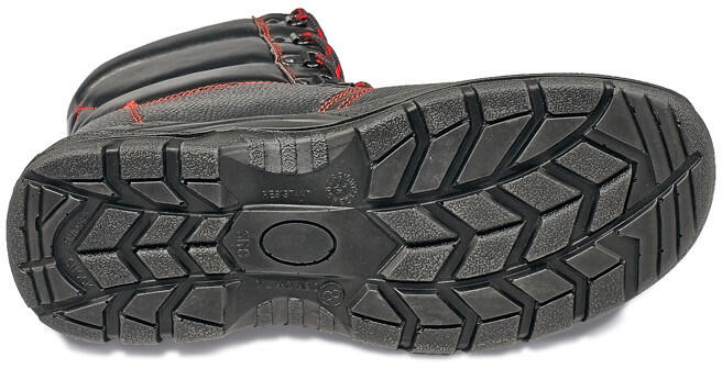 Biztonsági magas csizma fém orrvédővel és defektálló talpbetéttel. PU / PU antisztatikus talp ellenáll az olajoknak, energiaelnyelő a sarokban. Vízálló felsőrész dombornyomott hasított bőrből.