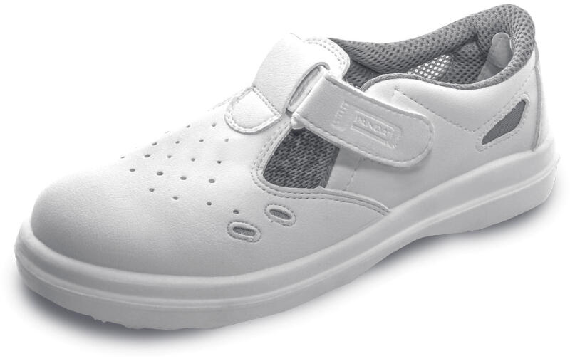 Biztonsági szandál acél orrmerevítővel, antisztatikus és csúszásgátló PU talppal, energiaelnyelő sarokrésszel, mikroszálas felsőrésszel és SANITIZED antibakteriális kikészítésű béléssel.