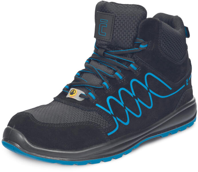 Comfortable safety ankle footwear with steel toe cap and steel anti-penetration midsole, certified to S1P safety class, according to EN ISO 20345:2022. Anti-static and ESD insock, double density PU/PU outsole with energy absorption in the heel. Durable split suede leather upper in combination with oxford fabric. Great choice for indoor jobs, such as automotive, logistics or industrial production.