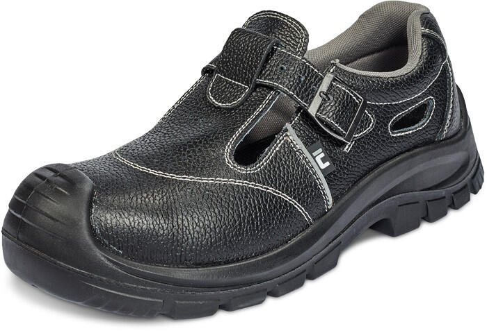 Biztonsági szandál nem fém orrvédővel és kompozit talpbetéttel átszúrás ellen, PU / PU csúszásmentes talppal, amely ellenáll az üzemanyagoknak, energiaelnyelővel a sarokban. Fém alkatrészek nélküli lábbeli - fémmentes.