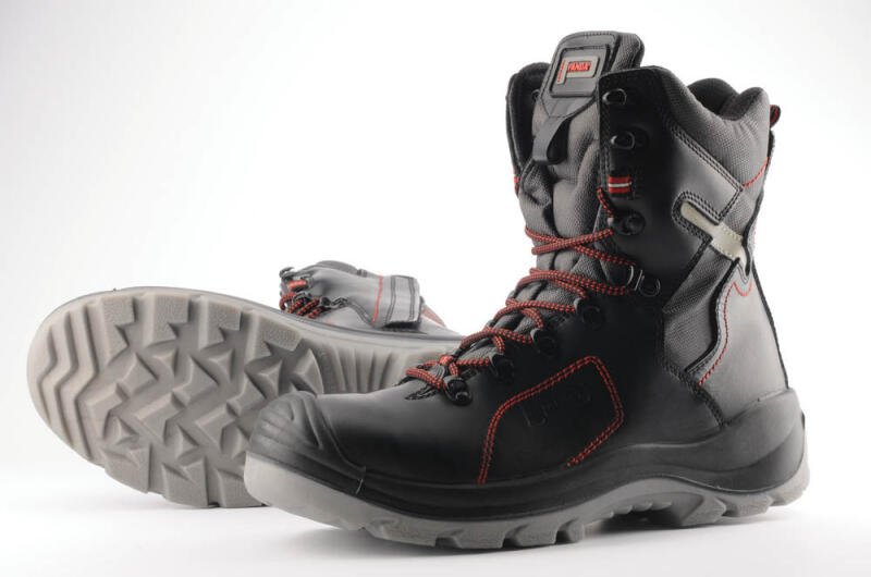 Biztonsági szigetelt magascsizma acél orr- és talpbetéttel, sav- és olajálló TPU talppal, PU orrvédővel, WINTHERM® béléssel, gomba- és bakteriális kezeléssel és bőr felsőrésszel textillel kombinálva.