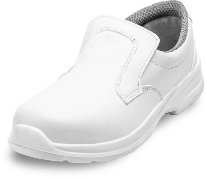 Biztonsági mokaszinok nem fém súllyal, jobb csúszásgátló paraméterekkel rendelkező olajoknak ellenálló PU talppal, energiaelnyelővel a sarokban, mikroszálas felsőrésszel és béléssel, antibakteriális kezeléssel SANITIZED.
