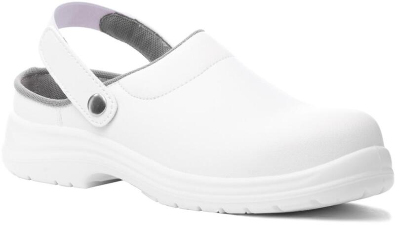 OKENITE (SB SRC) KLUMPA: fehér, antisztatikus védőlábbeli, vízlepergető és szellőző mikroszálas felsőrésszel, kompozit orrmerevítővel, sarokpánttal bevizsgált és nedves, tisztítószeres kerámia és acél felületre (SRC) minősített, csúszásbiztos, hajlékony, kétrétegű PU talp nagy kopásállóságú, szénhidrátvegyületeknek, növényi olajoknak, állati zsíroknak, lúgoknak ellenálló, fehér talp puha, szivacsos felsőrész, mely biztosan de kényelmesen tartja a lábfejet kopásálló, nedvességszívó, antibakteriális, hálós szerkezetű, szellőző puha bélés, kényelmes talpbetét 9OKEC: nagy védelmi képességű (SB, A, E, SRC) klumpa méret: 41 EU szabvány: EN ISO 20344, EN ISO 20345