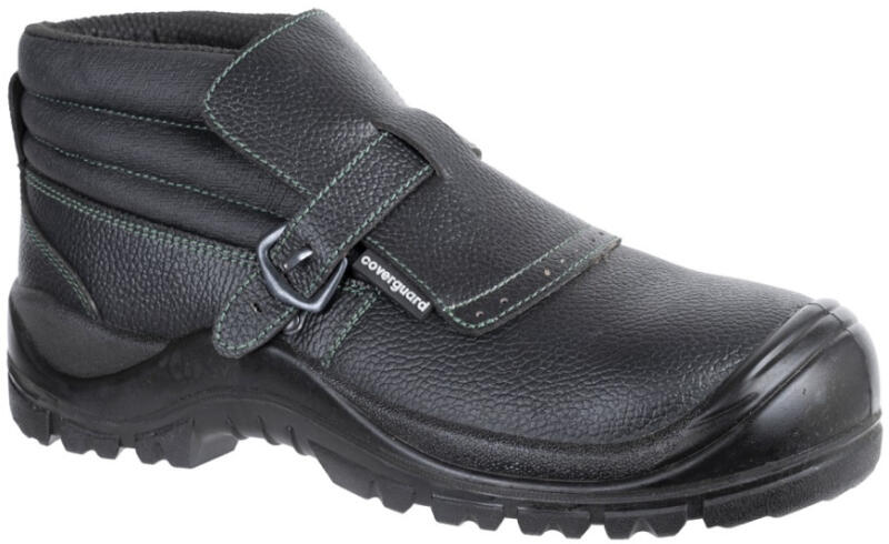 Vízlepergető, fekete bőr bakancs hegesztési munkálatokhoz; könnyű kompozit műanyag lábujjvédő, acélnál rugalmasabb, Wellmax fémmentes textil átszúrás elleni talplemez; olajálló, antisztatikus, SRC csúszásmentes, kétrétegű PU/PU talp; gyorscsattal ellátott lábfejvédő, nyelve kívül bőr, belül PU réteggel, lélegző nemszőtt Tybrelle bélés; szivacsos bokarész.