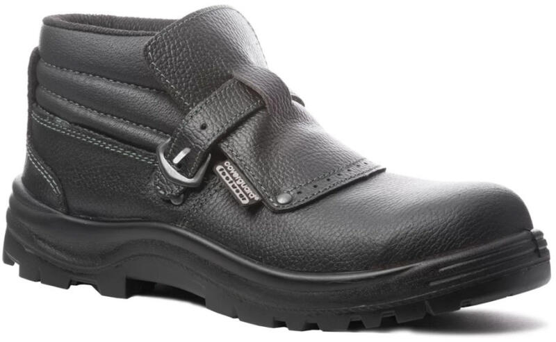 Vízlepergető, fekete bőr bakancs hegesztési munkálatokhoz könnyű kompozit műanyag lábujjvédő (CK) acélnál rugalmasabb, jobb hőszigetelő Wellmax® átszúrás elleni talplemez aramidszálas műanyagból gyorscsattal ellátott lábfejvédő, kívül bőr, belül PU réteggel olaj- és saválló, antisztatikus, SRA csúszásmentes, hőálló (180°C) kétrétegű PU/TPU talp lélegző Tybrelle® bélés, szivacsos bokarész és külön békanyelv 39-től 46-os méretig