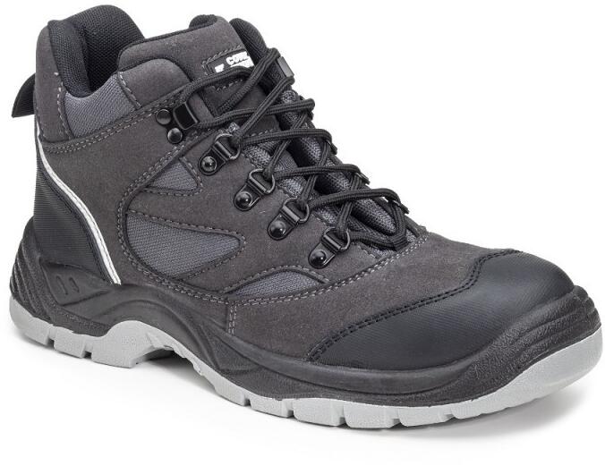 • biztonsági védőlábbeli fekete velúr bőrből, szellőző és vízálló antracit szürke hálós betétekkel