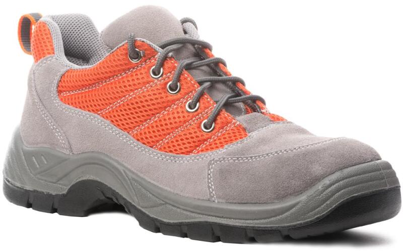 SPINELLE (S1P SRC) SZÜRKE/NARANCS CIPŐ: szürke marhahasíték felsőrész kiválóan szellőző, narancs poliészter gyöngyvászon betéttel antisztatikus, olajálló, kétrétegű PU/PU talp tisztítószeres, nedves kerámia és olajos acél felületre bevizsgált, emelt szintű SRC csúszásbiztosság mechanikai és folyadékok ellen védő emelt PU orr-rész acél orrmerevítő, acél talplemez, energiaelnyelő sarok három fém szellőzőnyílás a kiemelkedő lábkomfortért nedvességszívó, szellőző nemszőtt bélés szivacsos szártető és nyelv méret: 47 EU szabvány: EN ISO 20344, EN ISO 20345