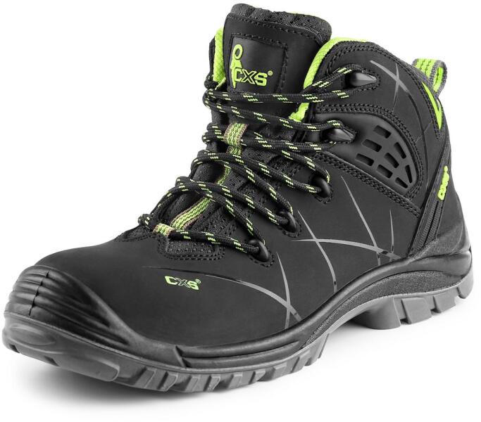 Magasszárú, modern munkacipő, fekete-zöld színű fényvisszaverő kiegészítőkkel. Egy részből áll, 1,6 - 1,8 mm víztaszító hasított bőrből készült, fém alkatrészek nélkül. A sarok TPU-tól kívülről védett. A bélés légáteresztő, de kopásálló anyagból készült. A PU-PU talp antisztatikus, olajálló és csúszásmentes.