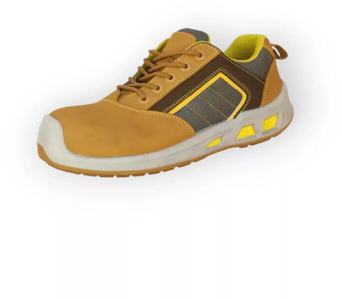 -Könnyített Kompozit orrmerevítős bakancs -minőségi vízálló nubukbőr felsőrész -bézs-sárga színben -kevlár talpátszúrás elleni talpbetét -kétrétegű sav- és olajálló csúszásmentes talp -lábenergia elnyelő szisztéma -lábkényelmi párna Air Comfort technológia révén energia-visszaadó képesség -széles lábfej-kialakítás -szellőző 3D belső bélés -kényelmi talpbetét -antisztatikus kényelmes, tartós viselet
