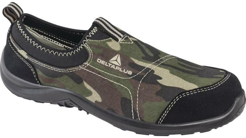 Delta Miami terepmintás munkavédelmi félcipő S1P: Felsőrész poliészter és pamut ; Talpbetét: Kivehető EVA-n poliamid, Talp: befecskendezett egyrétegű poliuretán, SRC csúszásmentes talp