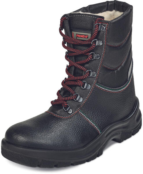 melegen bélelt biztonsági magasszárú bakancs acél lábujjvédővel, antisztatikus, csúszásgátló és üzemanyagálló talppal, energiaelnyelő sarokrésszel és lélegző bőrből készült vízálló felsőrésszel