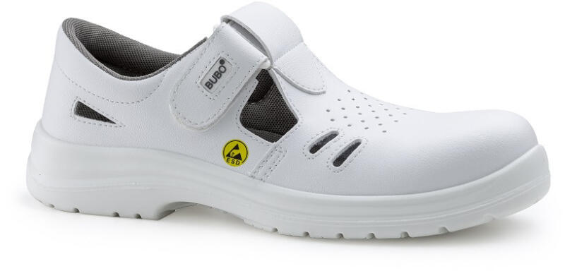 A Coverguard fehér színű védőszandál egyesíti a kényelmet, biztonságot és a stílust egyetlen lábbeliben. Magas minőségű, folyadékoknak jobban ellenálló, mikroszálas felsőrésze ellenáll az időjárás viszontagságainak, sérüléseknek és kopásnak, így tartósságot és hosszú élettartamot garantál. Kompozit orrvédelmének köszönhetően tökéletes védelmet biztosít viselője lábainak a leeső tárgyak okozta sérülésekkel szemben. ESD minősítése megakadályozza az elektrosztatikus kisülések okozta baleseteket. A munkavédelmi szandál szivaccsal párnázott bokarésze kényelmes viseletet biztosít viselője lábainak. Fémmentes, tépőzáros állítható pántjainak segítségével könnyen szabályozható a szandál illeszkedése viselője a lábaihoz. Antisztatikus, olajálló, hajlékony, kétrétegű, fehér PU talpa nedves kerámia és acél felületeken is maximális csúszásmentességet biztosít. Szellőzőnyílásai lehetővé teszik, hogy viselője lábai mindig szárazak maradjanak. Ez a könnyű súlyú, fehér színű munkaszandál egészségügyi és élelmiszeripari munkákhoz, egész napos használatra is alkalmas.