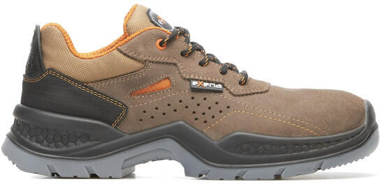 Az Exena munkavédelmi cipő ötvözi a biztonságot, tartósságot és komfortot. Tervezésekor a cél az volt, hogy a viselő hosszú órákon keresztül, a legkülönbözőbb munkakörnyezetben is maximális biztonságban és kényelemben érezhesse magát. Főbb jellemzők: A munkáscipő felsőrésze velúrbőrből készült, amely nem csak rendkívül tartós és kopásálló, de kényelmesen alkalmazkodik a láb formájához is. A velúr felsőrész természetes légáteresztő képességgel rendelkezik, így a láb hosszabb időn át történő viselése esetén is megőrzi a komfortérzetet, minimalizálja az izzadást. Kompozit orrmerevítője ütés és becsapódás ellen nyújt védelmet viselője lábujjainak. A kompozit anyag előnye, hogy könnyebb az acélnál, így a cipő egész napos viselése során is jelentősen csökkenti a láb fáradását. 2D PU (poliuretán) anyagból készült talpa csúszásgátló és antisztatikus tulajdonságokkal rendelkezik. Ez a tulajdonság különösen fontos nedves, olajos vagy egyenetlen felületeken végzett munkák során, ahol a stabilitás és a tapadás kiemelt szerepet játszik a biztonság megőrzésében. Kompozit talpátszúrás elleni védelme megakadályozza az éles tárgyak átszúrását. A félcipő talpbetétje kivehető és párnázott, így a cipő könnyen tisztítható, karbantartható, és lehetővé teszi a személyre szabott talpbetétek használatát is. Lélegző, kopásálló textil bélése pedig biztosítja a folyamatos szellőzést, csökkenti az izzadást, és hosszú távon komfortos viseletet biztosít a viselőjének. Ez a munkavédelmi cipő a védelem és a kényelem tökéletes egyensúlyát nyújtja munkavégzés során.