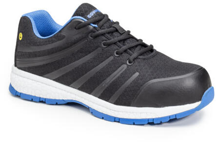 * szellőző hálós felsőrész TPU megerősítéssel * nagyon könnyű, kényelmes és rugalmas, teljesen fémmentes lábbeli fekete/kék színben * elérhető fekete-piros színváltozatban is (9GAL130) * antisztatikus, olajálló, emelt szinten SRC csúszásbiztosságú, kétrétegű EVA / nitril gumitalp * kompozit lábujjvédő és textil talplemez, energiaelnyelő sarok, * nedvességszívó, szellőző nemszőtt 3D hálós bélés * kivehető, komfortos, perforált légáteresztő EVA talpbetét * elektrosztatikus ESD tulajdonság