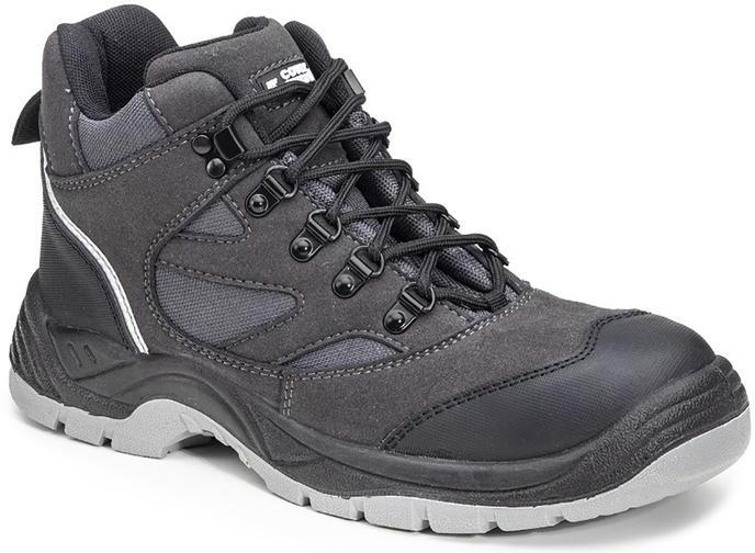 Az Silver   munkav delmi bakancs fekete velúrbőrből , szellőző és vízálló antracit szürke hálós betétekkel kialakított felsőrésszel készült. Plusz orr és sarokborítással rendelkezik, fényvisszaverő díszcsík a munkavédelmi bakancs hátsó részén. Lélegző és nedvszívó hálós béléssel lett kialakítva. Acél lábújjvédelemmel és talpszúrásvédelemmel  ellátott. MSZ EN ISO 20345:2011 S3  HRO SRC TULAJDONSÁGOK Felsőrész: Sportos megjelenésű munkavédelmi bakancs, Velúr bőr  felsőrésszel készült. A bokarésze és a nyelv párnázott  a komfortos viselhetőség érdekében.   Erősített fűzőlyukakkal ellátott. Talp: Talpa csúszásmentes és olajálló PU  talp. SRC típusú csúszásmentes futófelülettel rendelkezik. Rezgéselnyelő sarokrésszel , antisztatikus tulajdonságokkal rendelkezik. A magas járótalpmintázat segíti a tapadást még a nagyon durva felületű padozaton is. Megerősített saroktámasz és plusz orrborítás, folyadékok, mechanikai hatások elleni kiegészítő védelemhez. Belső rész: Lélegző, nedvszívó és gyorsan száradó hálós belső bélés Védelem: Az Silver munkavédelmi bakancs acél lábújjvédelemmel és talpszúrás védelemmel kialakított. Méretválaszték: 36-48