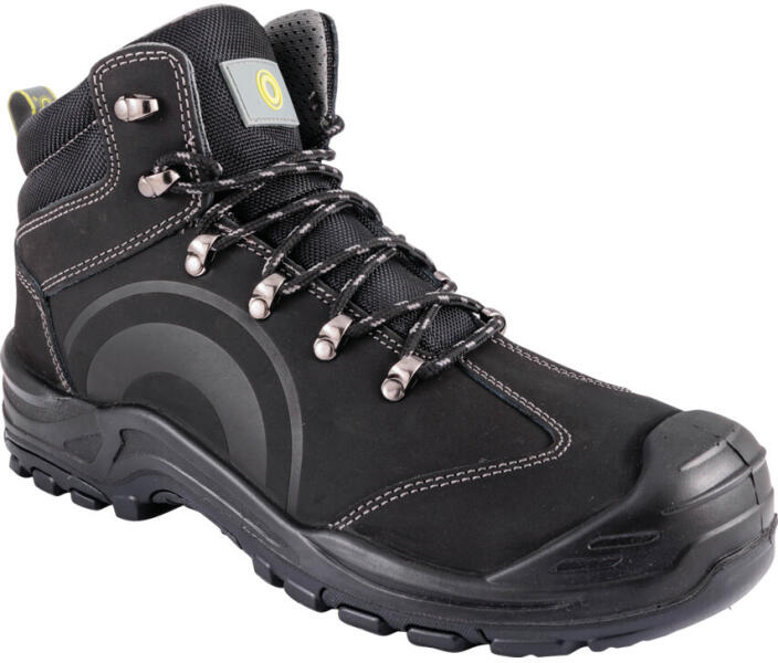 Krypton biztonsági túrabakancs, fekete. Fémmentes így a bakancs könnyű és kényelmes A poliuretán talp kényelmes és elnyeli az ütődéseket A fekete nubukbőr felsőrész vízálló hogy a lábfej száraz maradjon A kompozit orrbetét akár 200 joule-os becsapódás elleni védelmet biztosít A Kevlar talpbetét véd a szúrási sérülések ellen Teljes hosszúságban magas minőségű EVA talpbetét növeli a viselő kényelmét Számos méretben elérhető Tartalmaz egy pár tartalék fűzőt EN ISO 20345 2011