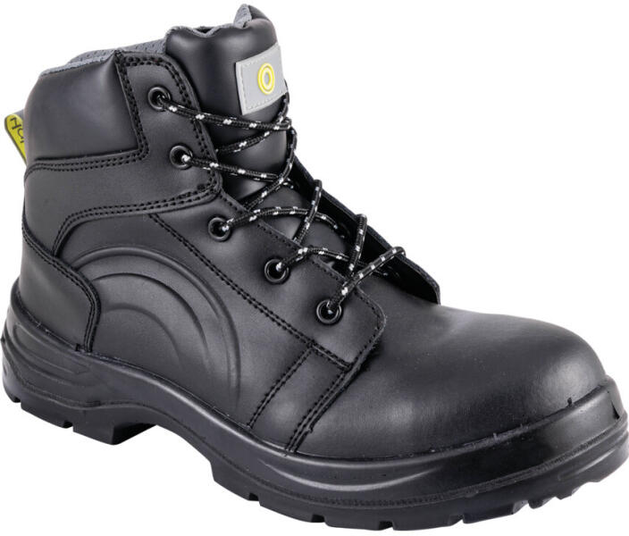 S1P Fekete női bakancs. Kompozit orrbetét nemfémes védő talpközéppel Sima fekete bőr felsőrész Fémmentes Kényelmes talpbetét Energiaelnyelő sarokrész PU PU járófelület Egy pár tartalék fűző EN ISO 20345 2011