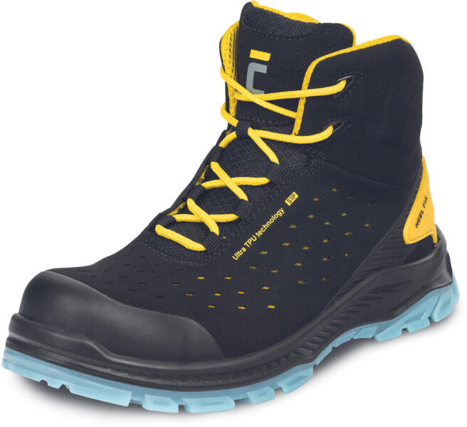 ESD biztonsági bakancs fémmentes lábujjvédővel, átszúrás ellen védő köztalppal kopásálló, kétrétegű PU/TPU talp, ami nem hagy nyomot a padlón innovatív mikroszálas felsőrész perforált felülettel az ideális szellőzésért TPU cipőorrvédő megnöveli a lábbeli élettartamát extra saroktámasz a kényelemért és a megnövelt biztonságért