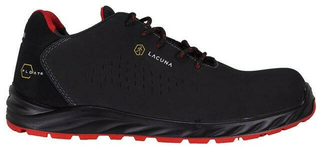 Lacuna Leon munkavédelmi félcipő piros-fekete színben S3 ESD SRC: Légáteresztő, extra rugalmas és kényelmes biztonsági cipő Műanyag orrkapli a leeső tárgyak elleni védelemért Nem fém anyagú talpátszúrás elleni védelem Kétrétegű poliuretán anyagú SRC csúszásmentes talp ESD védelem 100% fémmentes