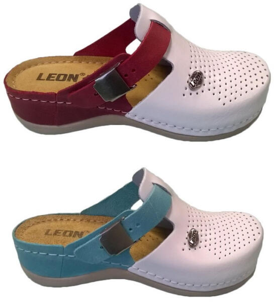 Leon Női bőr klumpa, fém csattal, zselés talpbetét, csúszásgátlós talp