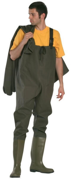 Halászok, horgászok vízhatlan ruhája, vízben való halászatra, horgászásra. Forró levegős technológiával DUNLOP csizmához hegesztett.