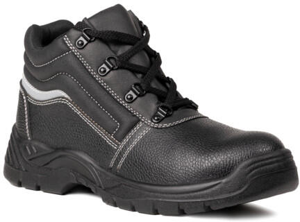 * fekete biztonsági védőlábbeli acél orrmerevítővel és talplemezzel * olajálló, antisztatikus kétrétegű PU talp, SRC csúszásmentesség és energiaelnyelő sarok * szivacsos bokarész és békanyelv, sarokrészen fényvisszaverő díszcsík * szellőző hálós belső bélés, kivehető talpbetéttel