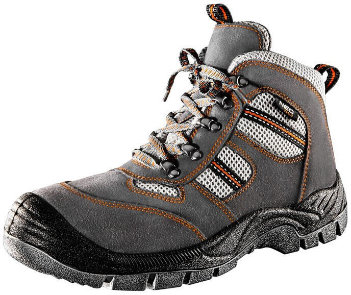 A NEO munkavédelmi magas szárú cipő alapvető védőeszköz a munkavégzéshez. A felsőrész kiváló minőségű hasított bőrből készül. A lélegző textilbetétek jó szellőzést biztosítanak. A rezgéselnyelő rendszerrel ellátott csúszásmentes talp gondoskodik a kényelemről és a biztonságról. Az átszúrás ellen védő fém betét és a megerősített fém orrmerevítő véd a sérülések ellen. A lábbeli belső részének puha kikészítésének köszönhetően magas fokú a munkavégzés kényelme. A CE jelölés a biztonság garanciája, bizonyítja, hogy a termék teljesít minden európai uniós követelményt. A NEO márka a professzionális igényeket is kielégíti.
