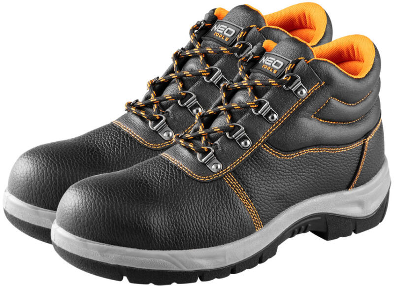 NEO bőr mukabakancs, acélbetétes, S1 SRC besorolással. Hasított bőr felsőrésszel, fémhurokkal, dupla és tripla varrással a lábbeli megerősítésére. Az acélbetét védelmet nyújt a 200 J energiával egyenértékű ütésekkel szemben. A bakancs ellenáll az olajnak, benzinnek és más szerves oldószereknek. A sarokrész energiaelnyelése megfelel az EN ISO 20345 szabvány szerinti biztonsági lábbeli besorolásnak. A bakancs több méretben kapható.