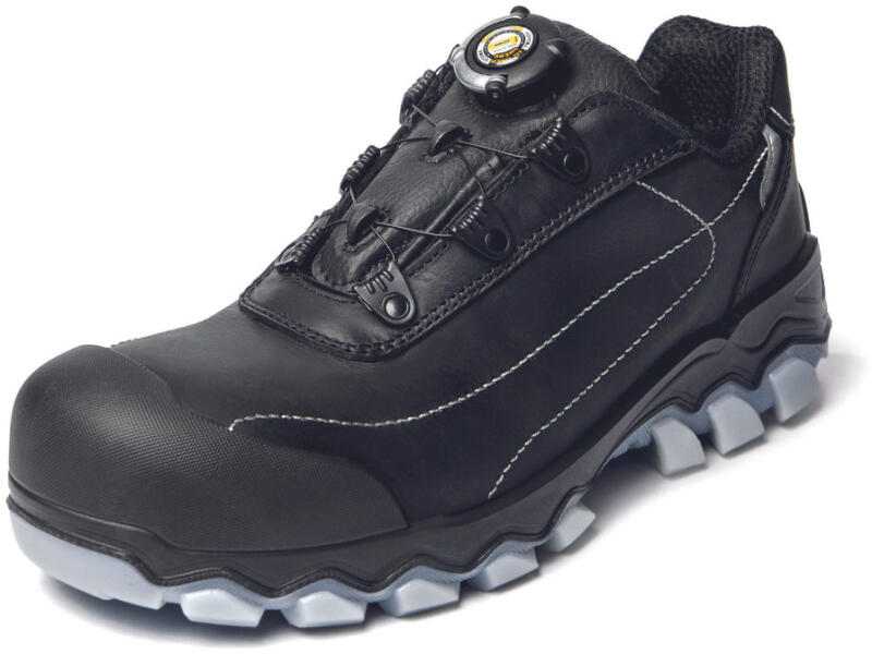 biztonsági félcipő kompozit lábujjvédővel és textil talpátszúrás elleni védelemmel, PU/TPU talppal kiváló minőségű színbőr felsőrész kivételesen gyorsan rögzíthető a tárcsás fűzőfeszítővel fémmentes kivitel