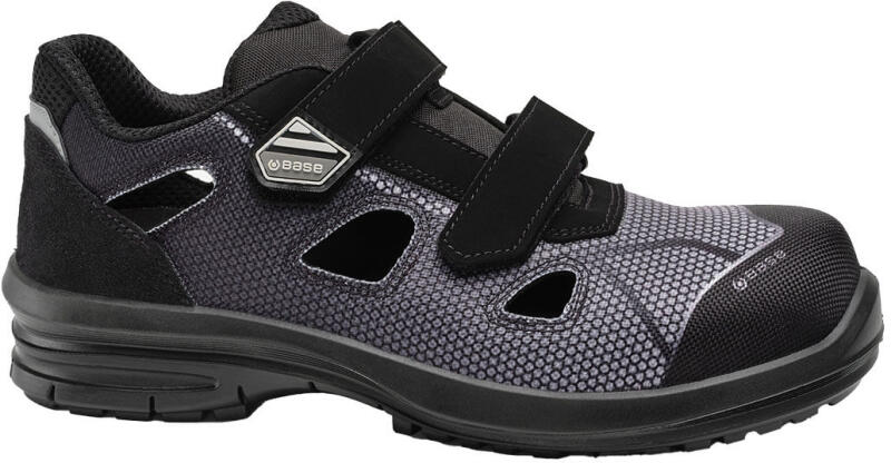 Base S1P munkavédelmi szandál technikai textil felsőrésszel, ESD tulajdonságokkal. Kompozit orrvédelemmel ellátott, ütéscsillapítás a saroknál. Antisztatikus és szénhidrogéneknek ellenálló egyedi kialakítású talp, a férfi és női lábnak megfelelő külön kapli szélességgel is választható. Javasolt felhasználási területek: elektronika, könnyűipar, kereskedelem, szolgáltatóipar, logisztika. Felhasznált anyagok és technológiák: Felsőrész: technikai textil. Bélés: SmellStop szagsemlegesítő és antibakteriális technológiával.