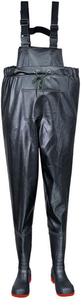 Nagy teljesítményű PVC/nitril biztosági mellescsizma acél orrmerevítővel és talplemezzel. Színkódolt piros talp, a védőképesség könnyű felismeréséhez.