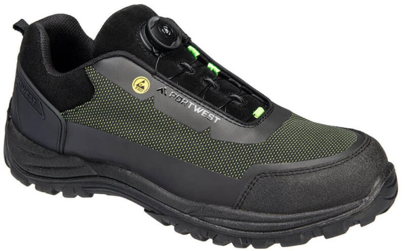 A Portwest munkavédelmi cipője a modern munkahelyek minden elvárását kielégítő, kiváló minőségű komfortos és biztonságos lábbeli. Felsőrésze strapabíró, vízálló A szintű vágásbiztos textil anyagból készült, nagy kopásállóságú orrborítással és erős TPU hátsó résszel, így hosszú élettartamot garantál. A munkáscipő kompozit orrmerevítője és talpátszúrás elleni védelme kiváló védelmet biztosít a lábnak a munkavégzés során előforduló sérülésekkel szemben. A munkáscipő átsó húzófüllel és innovatív huzalos fűzőrendszerrel gyorsabb fel- és levételt tesz lehetővé. 300ºC-ig hőálló, üzemanyag- és olajálló PU talpa csúszásmentes, így nedves vagy olajos felületen is biztonságos mozgást tesz lehetővé, ezzel csökkentve a csúszás okozta balesetek kockázatát. Könnyű súlya, energiaelnyelő sarka és párnázott cipőnyelve kényelmes viseletet biztosít az egész napos munkavégzés során. ESD tulajdonsága véd az elektrosztatikus kisülésekkel és feltöltődéssel szemben. Ez a sportos, utcai használatra is alkalmas védőcipő tökéletes választás olyan munkavállalók számára, akiknek fontos a kényelem, divatos megjelenés és a biztonság a munkavégzés során