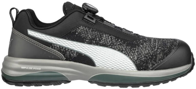 A Puma Safety munkavédelmi cipője a legújabb technológiai innovációkat és modern dizájnt ötvözi a maximális kényelem és védelem érdekében. Ez a kiváló minőségű lábbeli ideális választás azoknak, akik biztonságos és stílusos megoldást keresnek munkavégzésük során. Kiválóan illeszkedő Safety Knit felsőrésze szellőzést és kényelmes viseletet biztosít a hosszú munkanapok során. A munkáscipő üvegszálas orrmerevítője és extra szakadásbiztos, rugalmas kompozit átszúrás elleni talplemeze kiváló védelmet biztosít viselője lábainak a leeső nehéz és éles tárgyak okozta sérülésekkel szemben. A hőálló, futócipő technológiájú gumitalpa akár 300°C-ig hőálló, így a cipő ideális választás forró munkakörnyezetekben is. Valamint kiváló csúszásmentességet biztosít nedves és olajos felületeken egyaránt. Evercushion talpbetétje maximális párnázottságának köszönhetően a hosszú munkanapok során is kényelmes viseletet nyújt. Impulse Foam talpszerkezete pedig energiavisszanyerést biztosít, ennek köszönhetően a védőcipő segít csökkenteni a lábak fáradalmait. TPU orrborítással és sarokvédelemmel készül. Gyorstekerős cipőfűzője pedig könnyed fel- és levételt, valamint stabil illeszkedést biztosít. Fedezze fel a Puma munkavédelmi cipőjének előnyeit, és válassza a legjobbat a munkabiztonság és kényelem érdekében!
