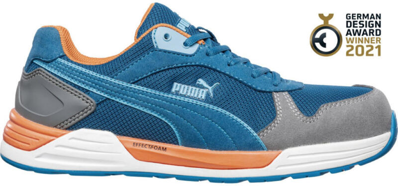 A Puma Safety Urban Effect termékcsalád munkavédelmi cipője tökéletes választás azoknak, akik nem kívnánnak kompromisszumot kötni a biztonság és kényelem terén munkavégzés során. Üvegszálas orrmerevítője megvédi a lábujjakat a súlyos ütésektől és nyomásoktól. Az extrém szakadásbiztos kompozit talpátszúrás elleni védelme pedig a talpakat védi a szúró tárgyakkal szemben. A munkáscipő textilhálós, mikroszálas felsőrésze könnyű és légáteresztő, valamint kiváló kopásállósággal rendelkezik. Lélegző bélése és új evercushion® custom fit mid talpbetéte magasabb kényelmet biztosít, hiszen kitűnően illeszkedik viselője lábához és párnázottsága pedig csökkenti a lábak fáradtságát. 300°C-ig hőálló, antisztatikus és üzemanyagálló, csúszásmentes 3 rétegű Urban Effect talpszerkezettel rendelkezik. Forgási ponttal ellátott külső talpának és Effect. Foam® habbal kiegészített, EVA habos talpközépének köszönhetően akár 70%-kal magasabb energiavisszanyerésre is képes. ESD tulajdonsága pedig védelmet biztosít az elektrosztatikus kisülésekkel szemben. Ez a sportos munkavédelmi cipő ideális választás számos munkakörnyezetben, hiszen kiváló védelmet és kényelmes viseletet biztosít munkavégzés során.