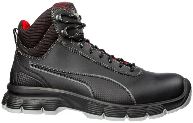 A Puma Condor Black Mid munkavédelmi bakancs a Puma Safety Rebound termékcsalád egyik legújabb tagja. Sima teljes bőr felsőrésszel készült. A védőcipőben acél orrmerevítő található és hajlékony kerámiaszálas talpátszúrás elleni védelem. ESD tulajdonságokkal rendelkezik. Speciális 3 rétegű PU talp szerekezete minden eddiginél jobb rugalmasságot biztosít viselőjének. A csúszásmentes külső talp (SRC) magas anyagsűrűsége miatt kevésbé kopik és meghosszabbítja a cipők élettartamát, a különféle szegmensekben elosztott profilnak köszönhetően pedig az egyenetlen, valamint a nedves és sima felületeken is maximális támogatást és tapadást biztosít. Evercushion Pro talpbetéttel!