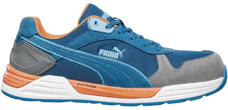 Puma Frontside Low S1P ESD HRO SRC munkavédelmi cipő az új Urban Effect család tagja. Üvegszálas orrmerevítővel és hajlékony, továbbfejlesztett (FAP® lite) extrém szakadásbiztos kompozit talpátszúrás elleni védelemmel ellátott munkavédelmi lábbeli. Textilhálós, mikroszálas felsőrész. Lélegző bélés és új evercushion® CUSTOM FIT MID talpbetét, ami még magasabb kényelmet biztosít, köszönhetően az illeszkedésnek és kitűnő párnázottságának. 300°C-ig hőálló, csúszásmentes 3 rétegű Urban Effect talpszerkezet. Külső gumi talp, forgási ponttal ellátva. EVA habos talpközép EFFECT. FOAM® habbal kiegészítve. Ezáltal akár 70%-kal magasabb energiavisszanyerést is elérhető. További tulájdonságok: ESD védelem, fémmentesség, TPU sarokvédelem, jól láthatósági elemek, további megerősített részek.