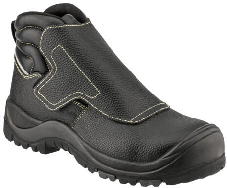 * vízlepergető, fekete teljes színbőr bakancs hegesztési munkálatokhoz, lángálló Kevlar(R) varrással, meleg ellen védő hőszigeteléssel (HI) * könnyű kompozit műanyag lábujjvédő (CK), rugalmas, kiváló hőszigetelésű, aramidszálas kompozit talplemez * SRC maximális csúszásbiztosságú, antisztatikus, olajálló, 300°C kontakt hőhatás ellen védő (HRO), nitrilgumi/PU flexibilis talp * tépőzárral ellátott széles bőr lábfejvédő olvadt fémcseppek ellen, lélegző és nedvszívó bélés, szivacsos bokarész, teljesen fémmentes formai kialakítás