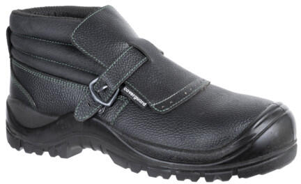 * vízlepergető, fekete bőr bakancs hegesztési munkálatokhoz * könnyű kompozit műanyag lábujjvédő, acélnál rugalmasabb, Wellmax fémmentes textil átszúrás elleni talplemez * olajálló, antisztatikus, SRC csúszásmentes, kétrétegű PU/PU talp * gyorscsattal ellátott lábfejvédő, nyelve kívül bőr, belül PU réteggel, lélegző nemszőtt Tybrelle bélés * szivacsos bokarész