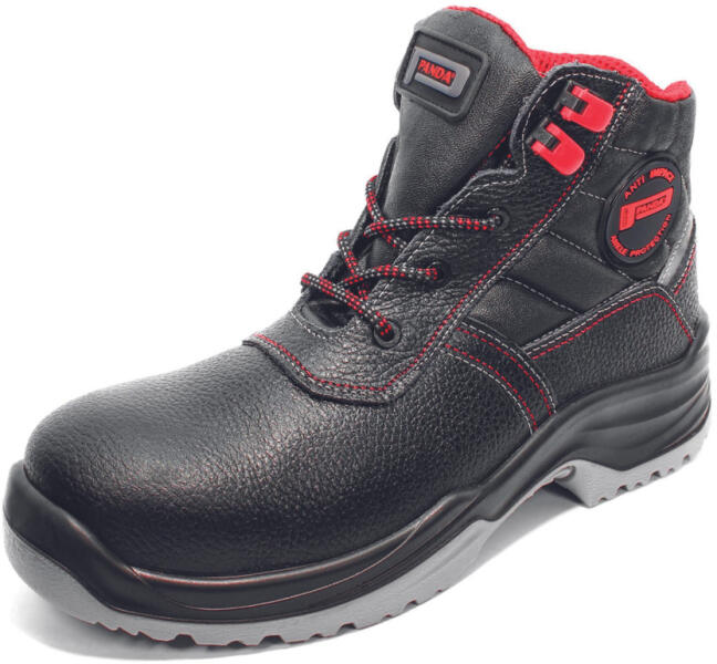 biztonsági bakancs kompozit lábujjvédővel, textil átszúrás ellen védő köztalppal antisztatikus, csúszásbiztos, üzemanyagálló PU/TPU talp, energiaelnyelő sarok vízlepergető bőr felsőrész
