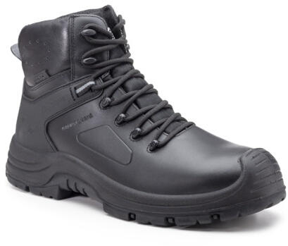 * fekete teljes színbőr felsőrész vízálló membránnal, kompozit lábujjvédő és flexibilis, fémmentes, átszúrás elleni textil talplemez * lélegző, nedvszívó és gyorsan száradó 3D hálós belső bélés, szivacsos szártető és nyelv és fém fűzővezetők * kivehető és szellőző perforált EVA talpbetét kényelmes szilikon betétekkel, antisztatikus, SRC csúszásbiztosságú, emelt kopásállósággal rendelkező, kétrétegű hőálló PU/nitril gumi talp, energiaelnyelő sarok sárlepergető talpmintázat speciális kialakításának köszönhetően: kiváló tapadás egyenetlen felületen, létrán